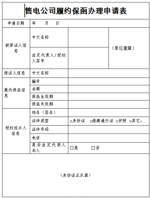 4.商业银行开立履约保函后,需将保函的电子编码通过人行大额支付系统发送到交易中心开户行。售电公司在电力交易平台提交履约保函办理申请,上传履约保函办理申请表(详见附件4)及履约保函正本的电子扫描件,交易中心根据开户行查验结果受理后,通知售电公司现场提交或邮寄纸质原件至交易大厅,交易中心收取后在交易平台向公众公示履约保函办理生效信息。