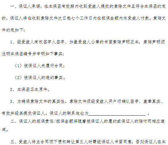 3.交易中心接受中国境内商业银行开立的履约保函。履约保函样本参照附件3的格式,如商业银行在开立过程中对履约保函样本格式存在异议,请及时与交易中心联系协商,交易中心暂不收取擅自修改样本格式的履约保函;